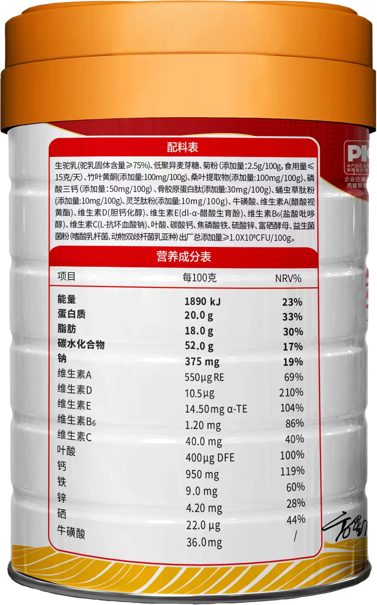 【產(chǎn)品名稱】:新國標(biāo)多維雙鈣配方駝乳粉