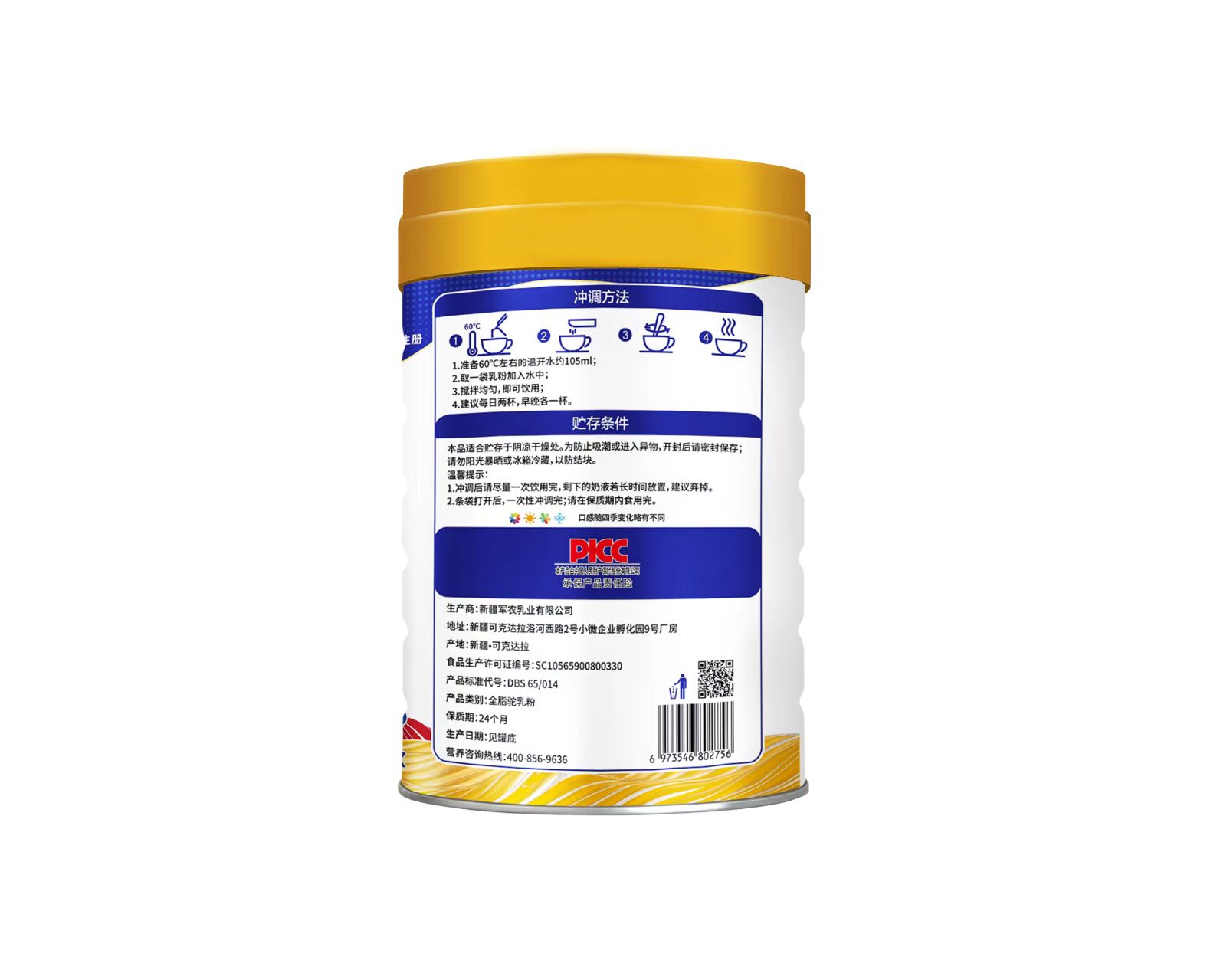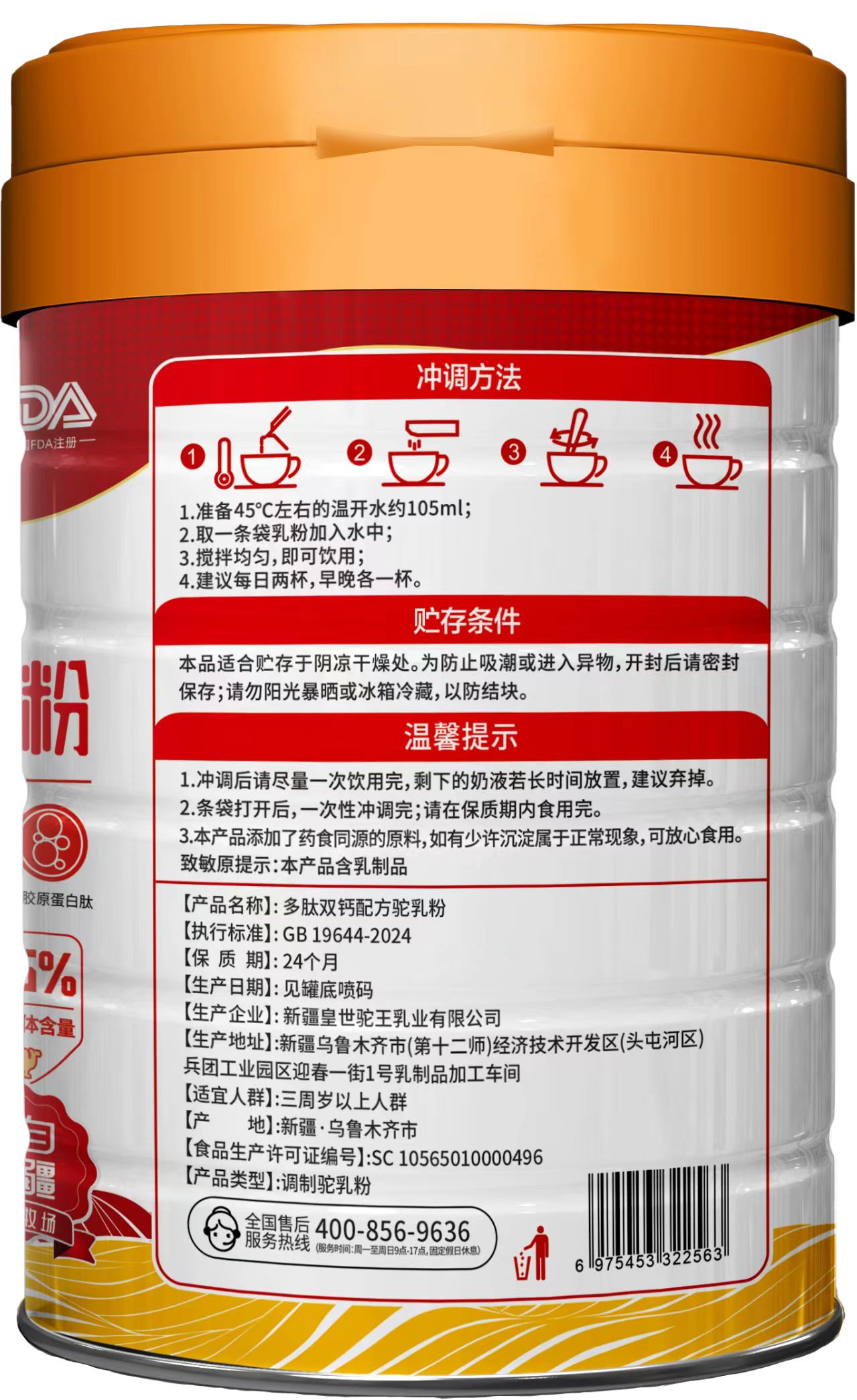 【產(chǎn)品名稱】:乳滋元多肽雙鈣配方駝乳粉